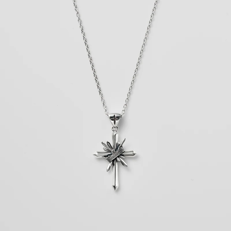 内側から溢れるようなエネルギーを後光で表現したリバーシブルのエッジなフォルムのクロスネックレス。