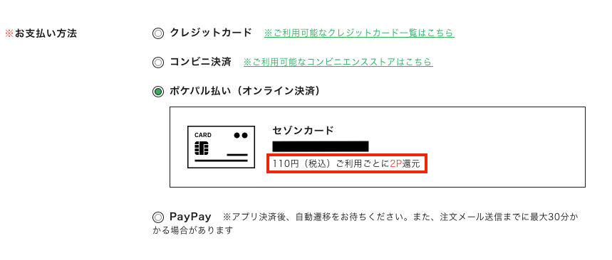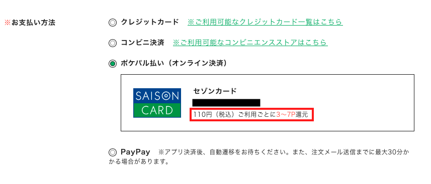 旧PARCOカードを含む「セゾンカード」を登録し、ONLINE PARCOで「ポケパル払い」を利用されるお客様